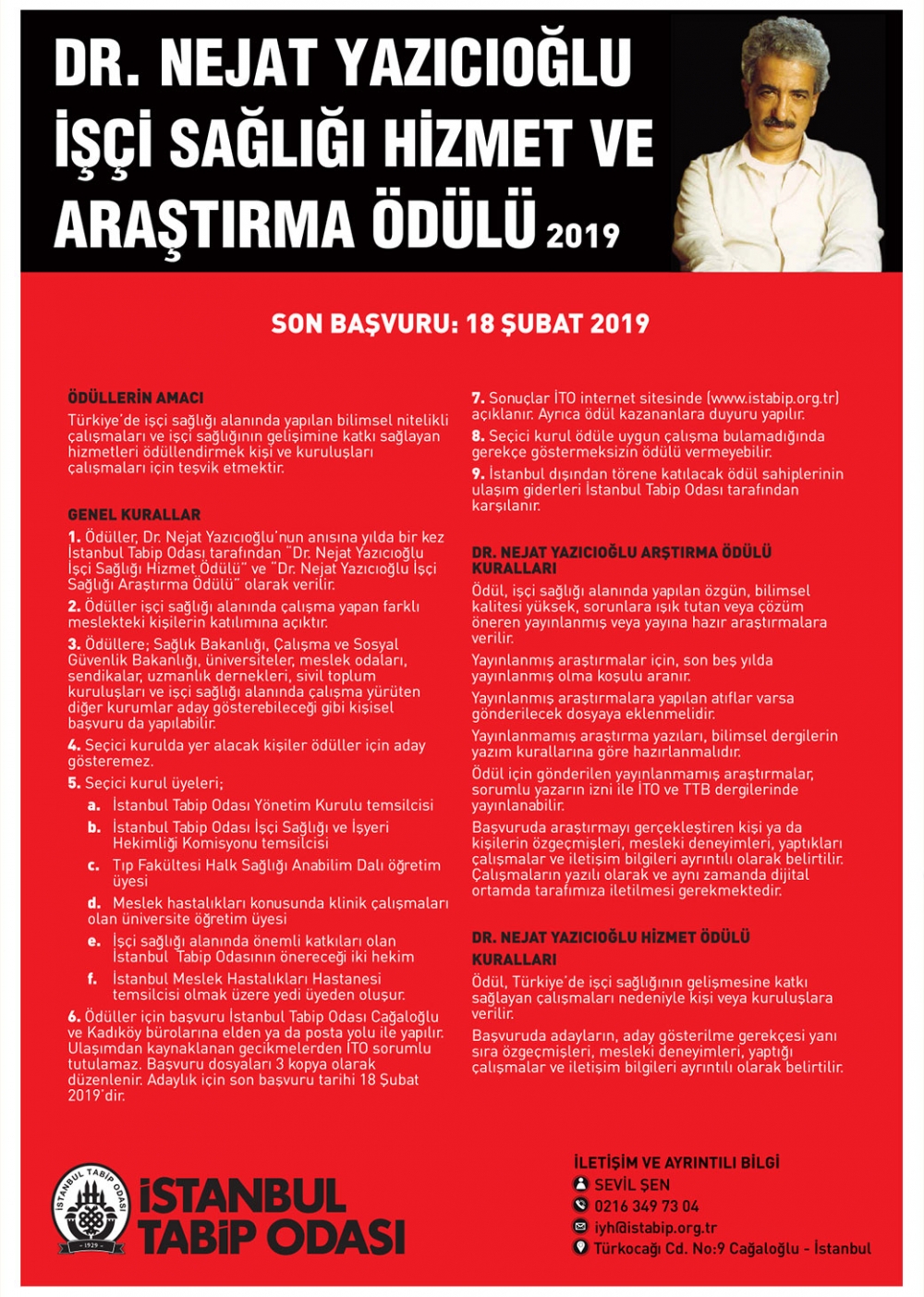 Nejat Yazıcıoğlu İşçi Sağlığı Hizmet Ödülü" ve "Dr. Nejat Yazıcıoğlu İşçi Sağlığı