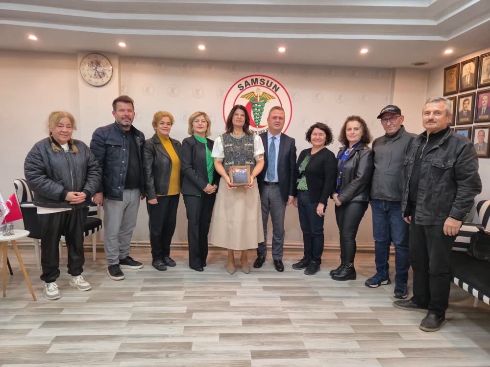 Atatürkçü Düşünce Derneği Samsun Şubesi Başkanı Deniz Gömeç ve yönetim kurulu üyelerini temsilen; Dr. Abdurrahman Akbaş, Dr. Işık Özkefeli, Songül Saygılı, Hava Karabulut, İrfan Çelik, Hava Kocakaya ve Ertuğrul Şenel odamızı ziyaret ederek Samsun Tabip Odası Başkanı Prof. Dr. Canan Seren ve yönetim kurulu üyelerine çalışmalarında başarılar dilediler. Nazik ziyaretleri için kendilerine teşekkür ederiz.