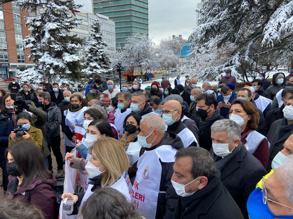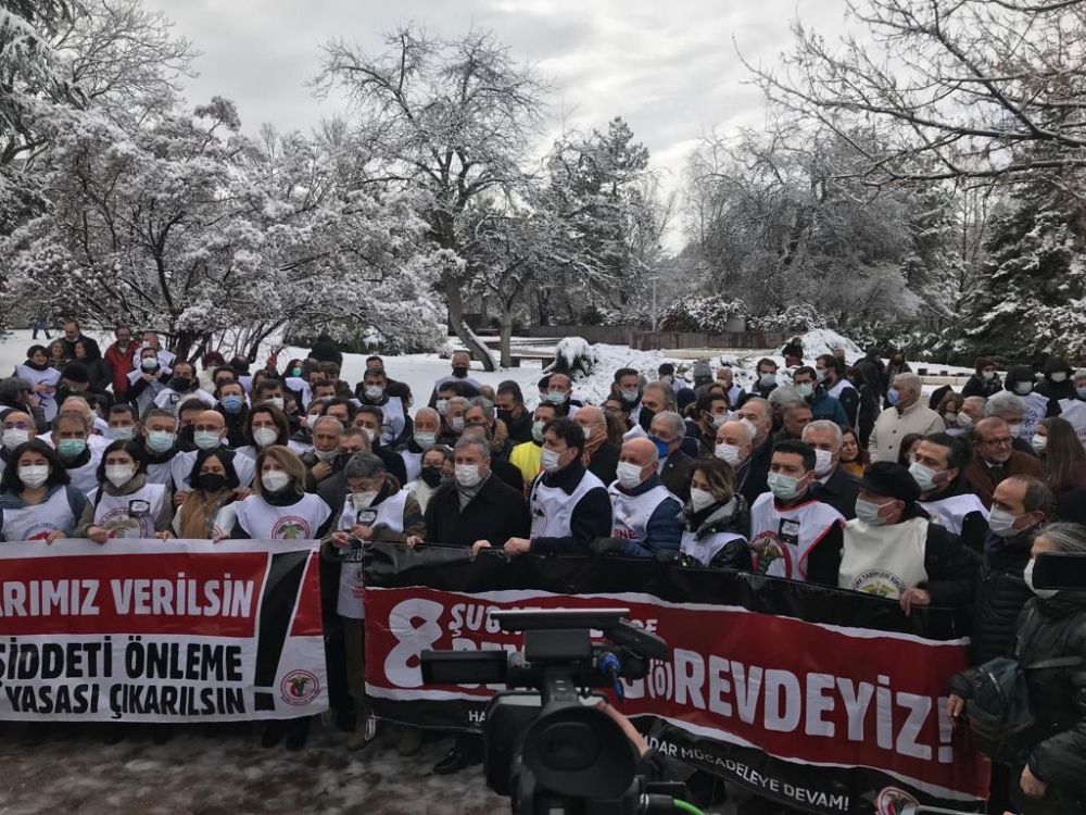 Bugün, dünya ülkeleri arasında en az maaşlardan birini alıp en fazla şiddete uğrayan hekimleri temsilen; Türkiye’nin dört bir tarafından gelen tabip odalarımızla birlikte onların taleplerini dile getirmek için Meclis önündeyiz.