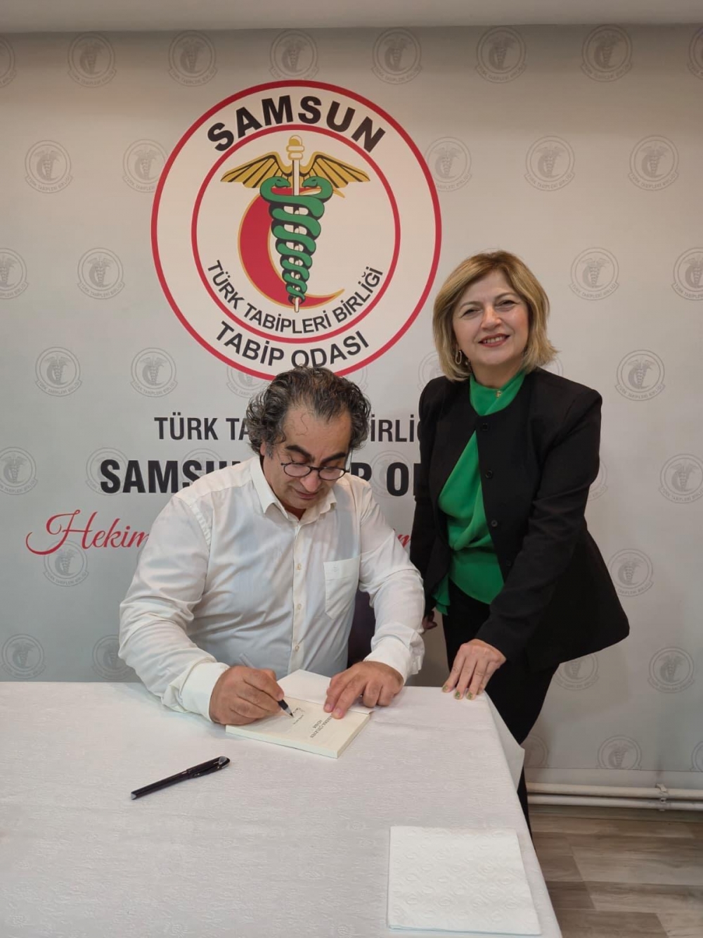 Dr. Alper Aktaş "Çekirdek Çitleyen Adam" isimli kitabıyla Samsun Tabip Odası'nda okurlarıyla buluşarak kitabını imzaladı.