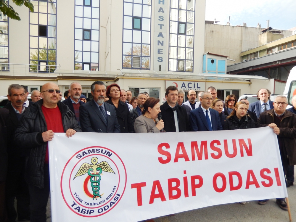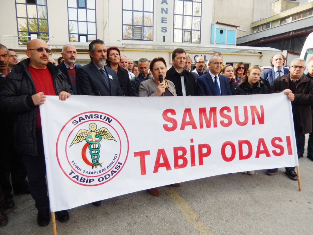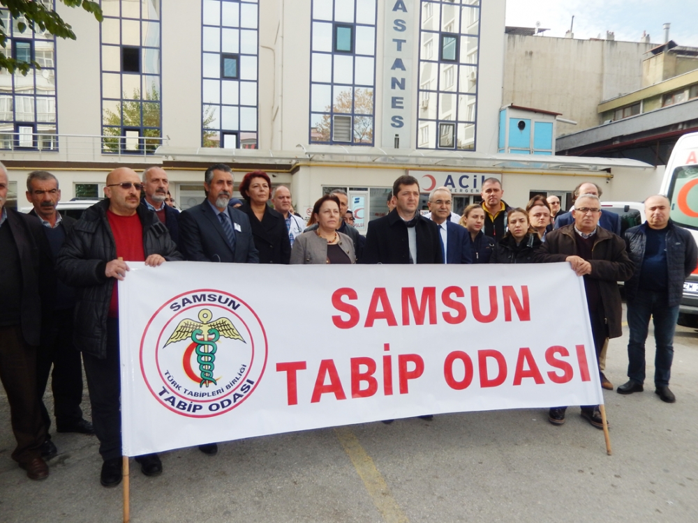 · Tüm sağlık kurumlarında şiddetin önlenmesi ve sağlık çalışanlarının şiddetten korunmasına yönelik olarak sağlıkta şiddet yasasının bugün gündemde olan torba yasa içinde olmadığını söylüyoruz. KHK rejimi ve güvenlik soruşturmaları adı altında hekimliği engellemek yerine hükümetin hekime ve sağlık çalışanlarına şiddetin temel nedeni olan ve performansa dayalı ödeme, katkı payı, esnek çalışma düzeni, kışkırtılmış hasta istekleri ve sağlık çalışanlarını aşağılayıcı siyasi söylemlerle sürdürülen sağlık politikalarına son vermesini