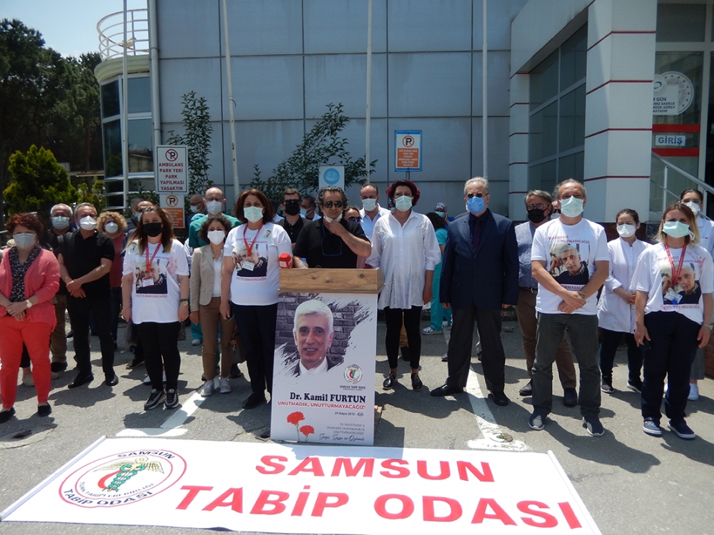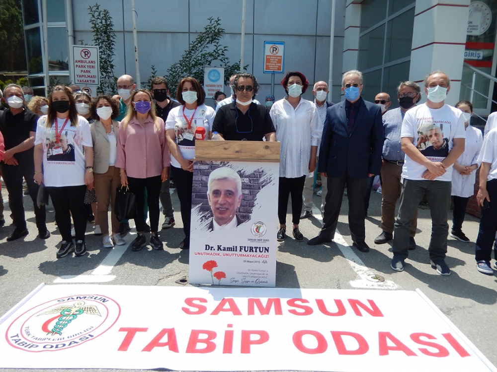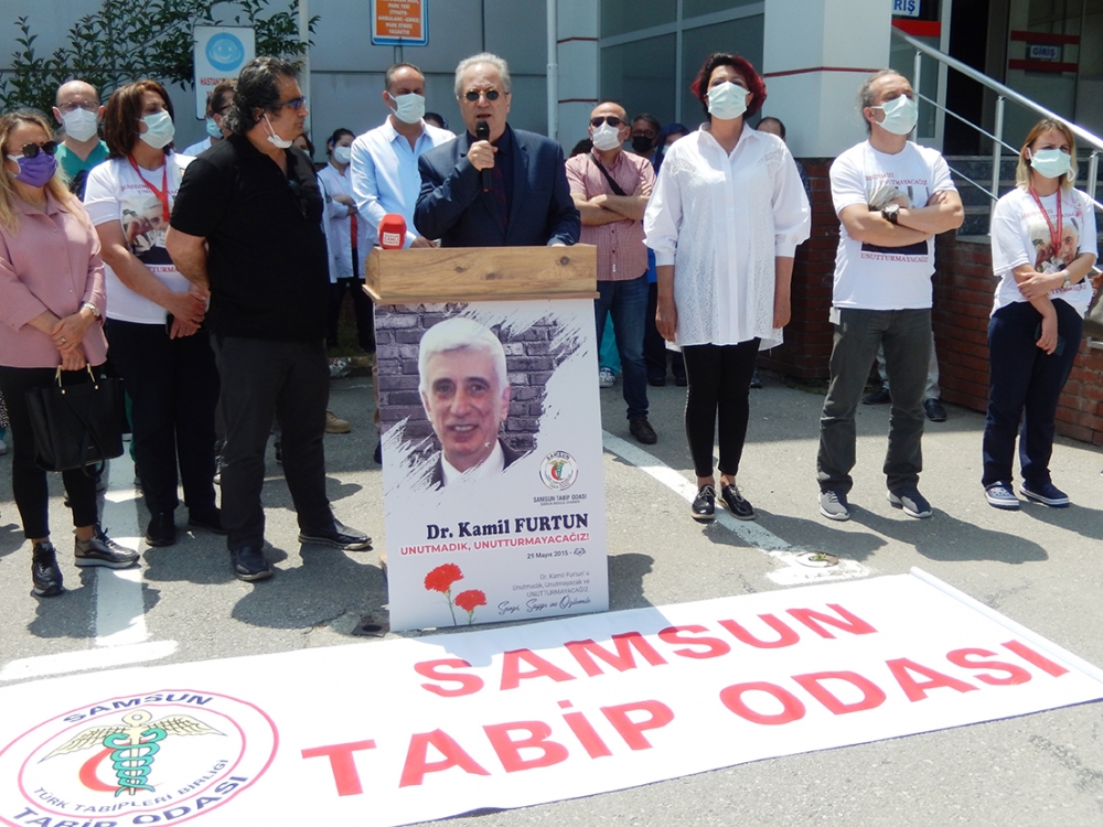Altı yıl önce, hemen şuracıkta, değerli meslektaşımız, şu an Samsun Tabip Odası başkanı Dr. Funda Furtun’un biricik eşi, Taylan’ın babacığı Dr. Kamil Furtun, vahşi bir saldırıyla, görevinin başındayken katledildi. Bizler, hepimiz gülen yüzümüzü kaybettik.