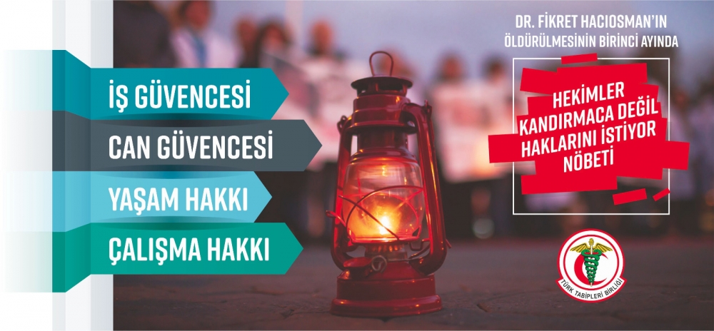 Sağlık çalışanlarına yönelik şiddetin yoğunlaştığı günümüzde, en son Dr. Fikret Hacıosman bir hastası tarafından görevi tam bir ay önce öldürülmüştü. Bu kaybın ardından yitirdiğimiz arkadaşlarımızın hatırası adına ve Sağlıkta şiddet yasası çıksın diye bir hafta süreyle ‘Nöbet Eylemi’ gerçekleştirmiştik en içten duygularımızla sorunlarımızı kamuoyuyla paylaşmış, halkımızla dertleşmiştik. Ardından TTB Merkez Konseyi ve Tabip Odaları Başkanları toplanarak TBMM ye Sağlıkta Şiddet Yasası için ziyarette bulunmuş ve TBMM Başkan Vekiline konuyu bizzat iletmiştik.