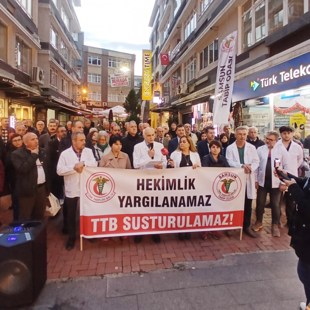 Süleymaniye geçidinde geniş katılımla gerçekleşen basın açıklamasında Samsun Tabip Odası Başkanı Dr. Ömer Faysal Çadır şunları söyledi :