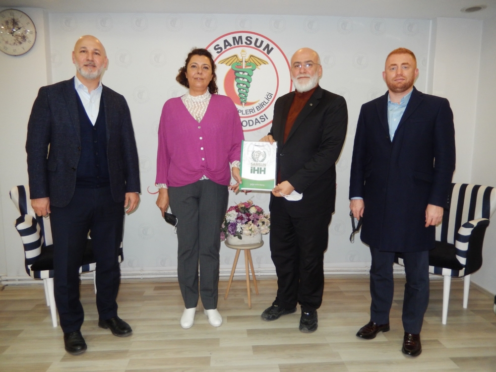 Samsun İnsan Hak ve Hürriyetleri İnsani Yardım Vakfı (İHH) Başkanı Mustafa Yeşil ve beraberindeki heyet odamızı ziyaret ettiler. Ziyarette Samsun Tabip Odası başkanı Dr. Funda Furtun hazır bulundu. Ziyarette güncel meseleler değerlendirilirken fikir paylaşımında bulunuldu.