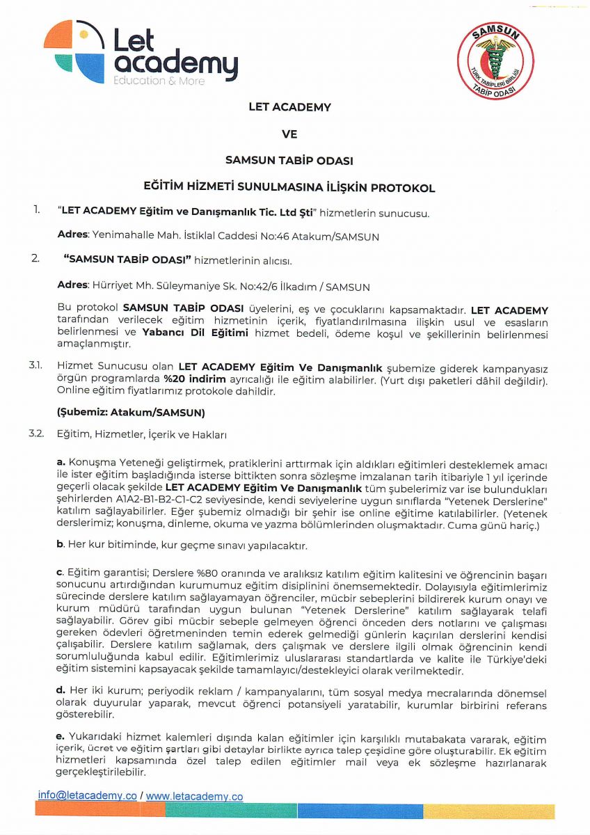 Samsun Tabip Odası ve Let Academy arasında üyelere özel indirimleri kapsayan anlaşma protokolü imzalandı.