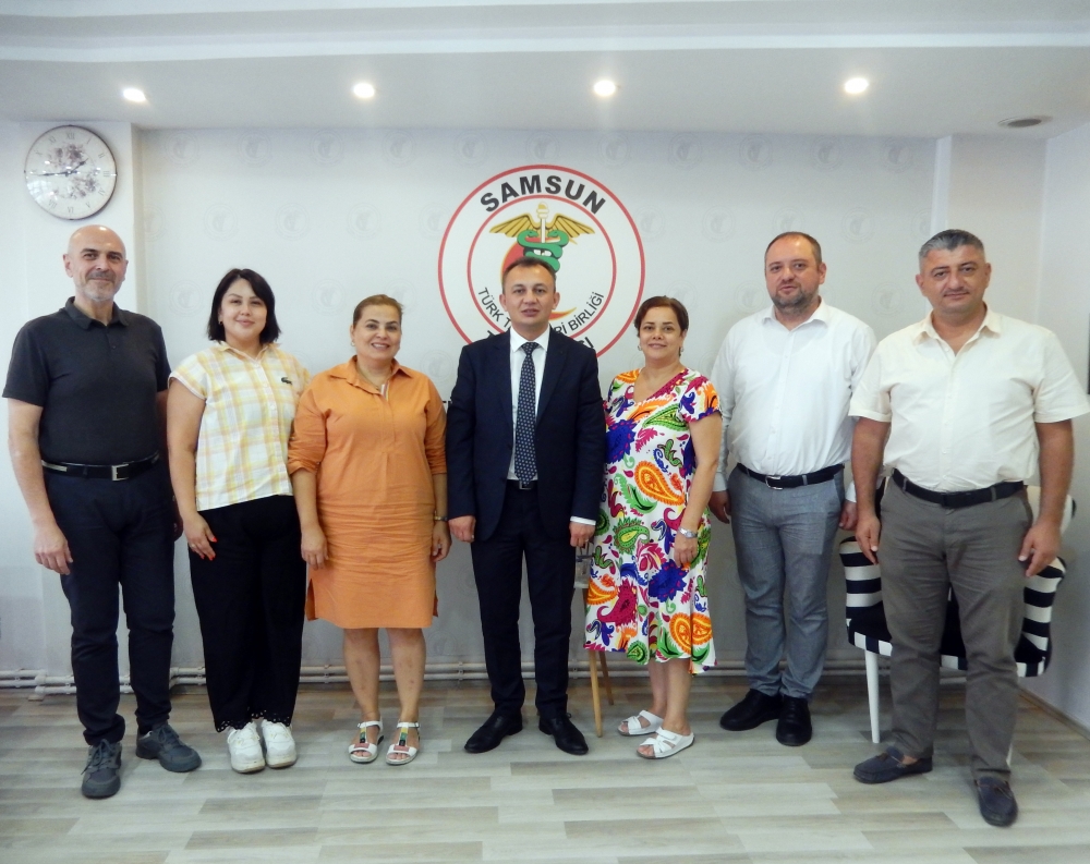 Samsun İl Sağlık Müdürü Uzm. Dr. Mustafa Uras ve Sağlık Hizmetleri Başkanı Uzm. Dr. Kemal Serhan Sandıkçı odamızı ziyaret ederek Samsun Tabip Odası Başkanı Dr. Sema Aydoğdu ve Yönetim Kurulu üyeleri ile samimi bir sohbet gerçekleştirdiler. Ziyarette şehrimizin güncel sağlık meseleleri görüşülerek fikir alışverişinde bulunuldu. Nazik ziyaretleri için kendilerine teşekkür ederiz.
