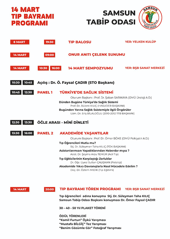 Samsun Tabip Odası 14 Mart Tıp Bayramı Programı yayınlandı