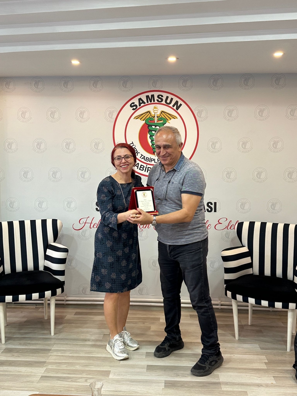 Samsun Tabip Odası 2024-2026 dönemi Yönetim Kurulu önceki dönemde görev alan kurul temsilcilerine teşekkür plaketi takdim etti.
