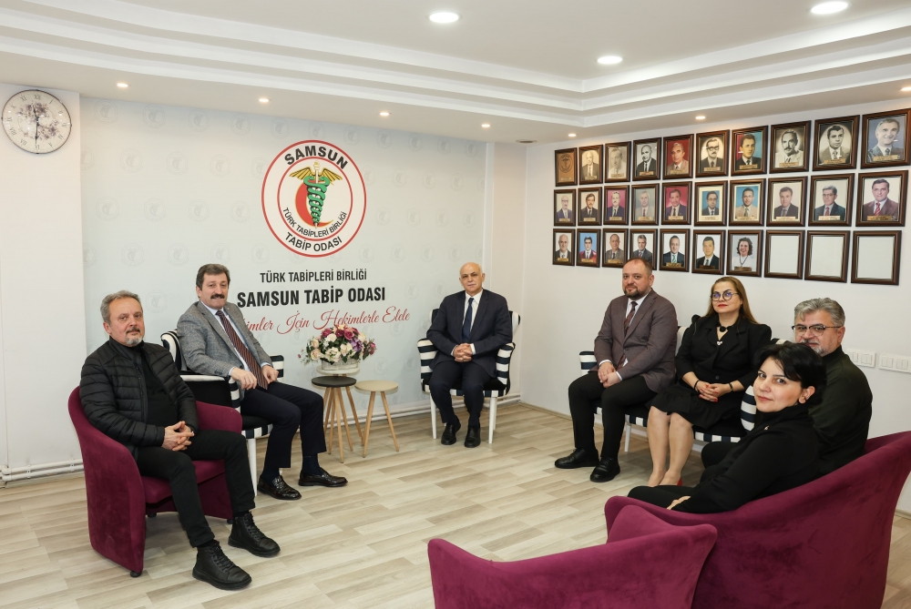 Samsun Valisi Sayın Orhan Tavlı, İl Sağlık Müdür Vekili Uzm. Dr. Kemal Serhan Sandıkçı ile birlikte Samsun Tabip Odası'nı ziyaret ederek; Başkan Dr. Ömer Faysal Çadır ve yönetim kurulu üyeleriyle bir araya geldi. Samimi bir ortamda gerçekleşen ziyarette hekimlerin ve tüm sağlık çalışanlarımızın 14 Mart Tıp Bayramı'nı kutlayan Samsun Valisi Sayın Orhan Tavlı'ya nazik ziyaretleri ve güzel dilekleri için teşekkür ederiz.