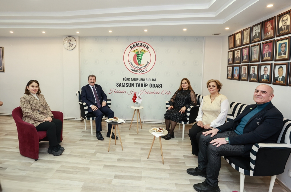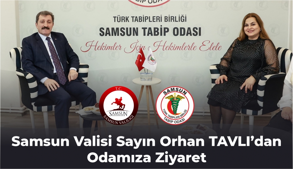 Samsun Valisi Sayın Orhan Tavlı, Samsun Tabip Odası'nı ziyaret ederek; Samsun Tabip Odası Başkanı Dr. Sema Aydoğdu, Samsun Tabip Odası Genel Sekreteri Dr. Onur Çubukçu, Yönetim Kurulu üyeleri Dr. İlkem Duman ve Dr. Bahar Gül ile bir araya geldi. Samimi bir ortamda gerçekleşen ziyarette şehrimizin genel sağlık politikaları ve gelişmeleri üzerine bir sohbet gerçekleşti. Samsun Valisi Sayın Orhan Tavlı'ya nazik ziyaretleri için teşekkür ederiz.
