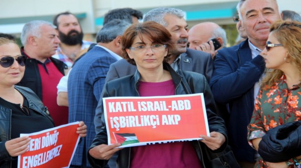 Pankart açıp sloganların atan öfkeli kalabalık adına konuşan ESK Dönem Sözcüsü Mustafa Niyazi Bulut, “ABD ve İsrail’in emperyalist amaçları doğrultusunda Kudüs’ü iç politika malzemeleri yapmaları çözüm yerine çözümsüzlüğü, barış içerisinde bir yaşam yerine çatışma ve kaosu derinleştirmektedir. Şiddet ve insanlık dışı uygulamalar derhal sonlandırılmalı, Filistin ve İsrail halkının bir arada ve barış içerisinde yaşamaları için gerekli siyasal adımlar atılmalıdır” dedi.