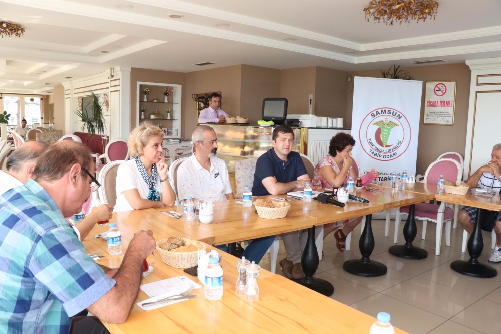 Samsun Tabip Odası Başkanı Murat Erkan ve yönetim kurulu üyeleri, sağlık sektöründeki gelişmeler ve sağlık çalışanlarının sorunları ile ilgili basın toplantısı düzenledi. Toplantıda konuşan Samsun Tabip Odası Başkanı Murat Erkan, özellikle sağlıkta şiddet konusunda olmak üzere genel değerlendirmelerde bulundu.