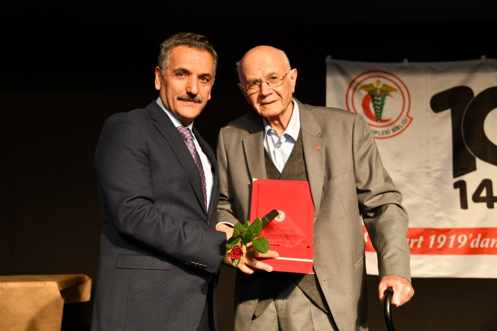 Bu olayların etkisinde kalarak insanlarımıza olan sevgimizi, şefkatimizi ve merhametimizi eksik etmeyelim. Bizler şifa dağıtmaya devam edelim. Yanlış yapanlar cezalarını mutlaka çekeceklerdir. Törene katılan sizlere çok teşekkür ediyorum. Ben bu vesile ile tüm hekimlerimizin ‘14 Mart Tıp Bayramı’nı bir kez daha kutluyor, hepinizi sevgi ve saygılarımla selamlıyorum.” dedi. Konuşmaların ardından meslek hayatında 30’ncu, 40’ncı ve 50’nci yılını dolduran hekimlerimize plaketleri protokol üyeleri tarafından, 62’nci yılını dolduran en kıdemli üye Op. Dr. Şerafettin Avcıkurt’un plaketi de Valimiz Sayın Osman Kaymak tarafından verildi. ‘14 Mart Tıp Bayramı’ plaket törenine ayrıca, Ondokuz Mayıs Üniversite Rektör Yardımcısı Prof. Dr. Mehmet Ali Cengiz, OMÜ Tıp Fakültesi Dekanı Prof. Dr. Ayhan Dağdemir, kamu kurum ve kuruluş temsilcileri, sivil toplum kuruluş temsilcileri, öğretim üyeleri ile öğrenciler katıldı.