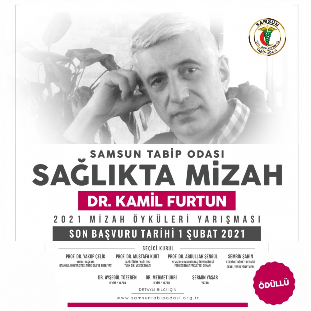 Samsun Tabip Odası tarafından düzenlenen Dr.Kamil Furtun Mizah Öyküleri yarışması son başvuru tarihi 1 Şubat 2021 tarihine kadar uzatılmıştır.