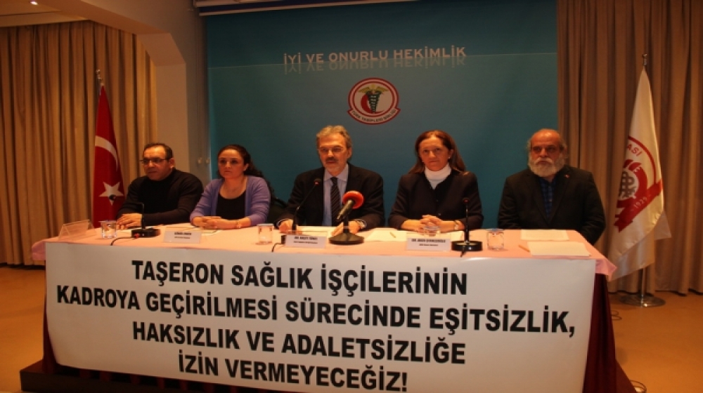 Tükel, “Kamuda taşeronu kaldırdık derken, bir yandan belediyeleri kapsam dışında bırakıp diğer yandan kamudaki taşeron işçilerin %70’inin yer aldığı sağlık işkolu tümüyle inşaat şirketlerinin ve onların ortağı olan şirketlerin aracılığıyla topluca taşerona mı verilecektir? Şehir hastaneleri efsanesi daha başından taşeron şirket hastaneleri gerçeğine mi dönüşüyor?” sorularını yöneltti. Tükel, sağlık meslek örgütleri olarak, yıllardır emeği ve kimliği yok sayılan taşeron sağlık işçilerinin kadroya geçirilmesi sürecinde eşitlik, haksızlık ve adaletsizliğe izin vermeyeceklerini vurguladı.