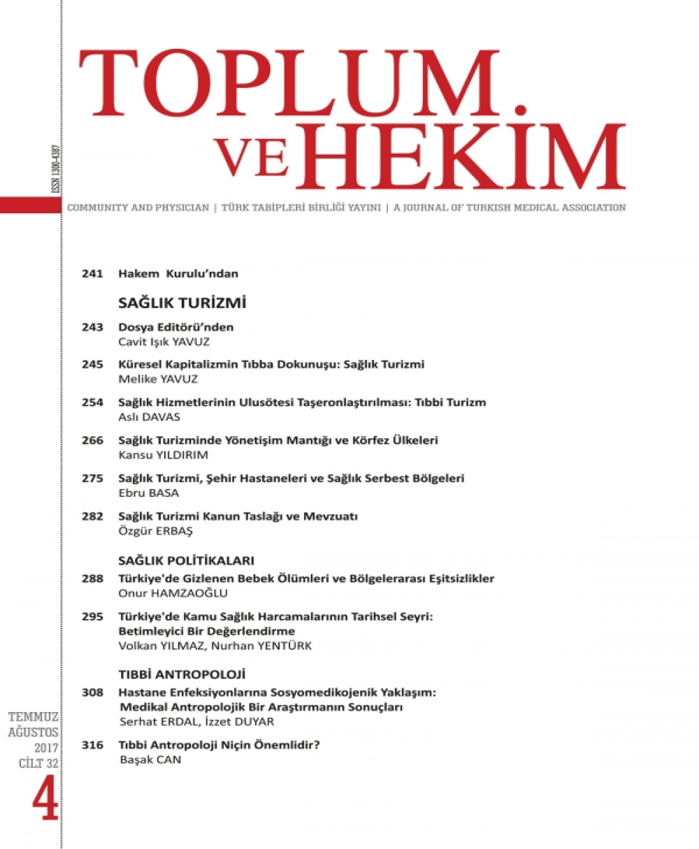 Toplum ve Hekim dergisinin sağlık turizmi dosyasını da içeren yeni sayısı yayımlandı. Sayıda sağlık turizmi dosyasında beş, sağlık politikaları başlığında iki, tıbbi antropoloji başlığında iki olmak üzere toplam dokuz yazı yer alıyor.