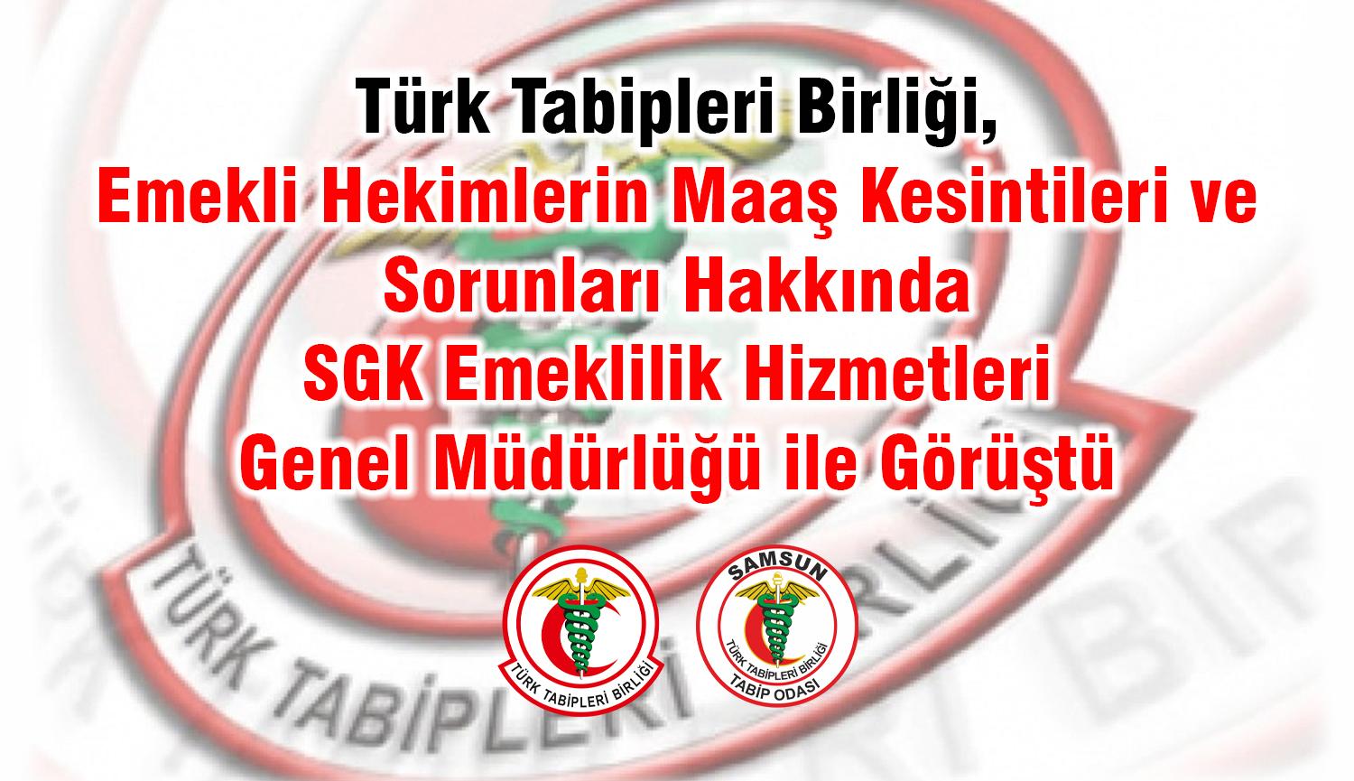 Son aylarda emekli hekim maaşlarında yapılan kesintiler hakkında bilgi edinmek ve emekli hekimlerin sorunlarını konuşmak üzere Türk Tabipleri Birliği heyeti tarafından SGK Emeklilik Hizmetleri Genel Müdürlüğü ziyaret edildi. Ziyarete Türk Tabipleri Birliği Merkez Konseyi adına TTB Merkez Konseyi Başkanı Prof. Dr. Alpay Azap, Konsey Üyesi Dr. Nilüfer Ustael ve TTB Emekli Hekim Kolu Başkanı Dr. Mehmet Çakmak katıldı. TTB heyeti tarafından emekli hekim sorunları ve taleplerinin iletildiği ziyarette dile getirilen sorunlar ve yanıtları aşağıdaki gibi özetlenebilir:
