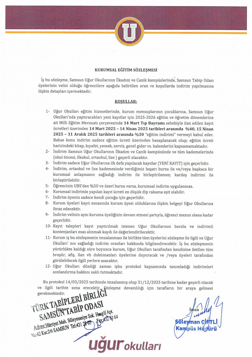 Uğur Okulları'ndan Samsun Tabip Odası Üyelerine Özel İndirimler